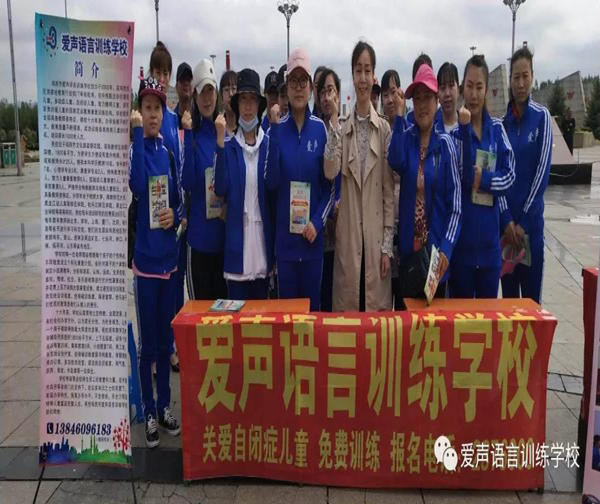 爱声学校的老师和鸡西市爱心之家志愿者们在广场周围发放宣传资料,希望更多的人了解、关注孤独症,智力障碍,听力障碍等特殊儿童。